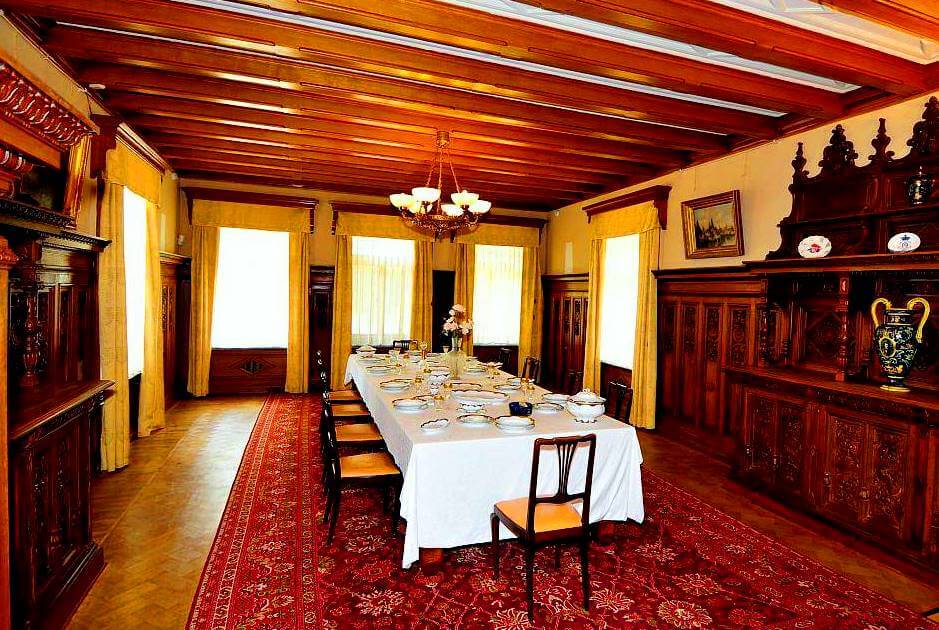 В 1889 году имение вместе с недостроенным дворцом приобрело Главное управление уделов, которое ведало личным имуществом императорской семьи. Александр III приказал достроить дворец. Оформить фасады и интерьеры он поручил академику М.Е.Месмахеру. Новые архитектурные решения смягчали средневековые стиль - черты ренессанса и барокко, использование фасадной декоративной плитки, каменных резных элементов оформления обусловили ярко выраженный характер Массандравского дворца. Предназначенный исключительно для проведения досуга августейшей семьи, дворец отличается и оригинальным стилем интерьеров. Словом в оправдание внешнего облика массандровской резиденции царя, М.Е.Месмахер придал столовой образ рыцарского зала. Интерьер и меблировка других комнат также подчеркивает - вы попали во дворец-игрушку, который не предназначен для чрезмерного стороннего любопытства.